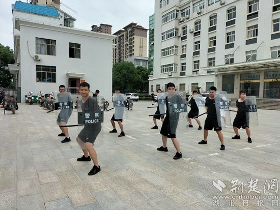黃梅縣公安局特巡警大隊開展警棍盾牌操組合訓練。通訊員供圖