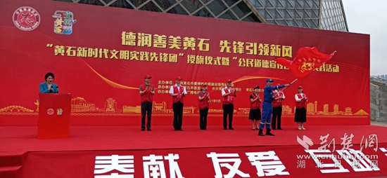 “黃石新時代文明實踐先鋒團”授旗。通訊員 供圖