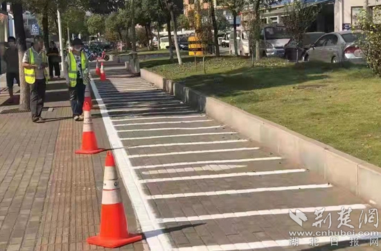 補(bǔ)劃非機(jī)動(dòng)車停車泊位。通訊員供圖