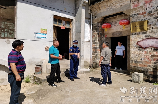 英山縣消防救援大隊深入轄區(qū)傳統(tǒng)村落吳家山林場大河沖村開展消防安全檢查。通訊員供圖