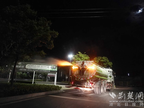 夜間灑水車(chē)灑水。通訊員供圖