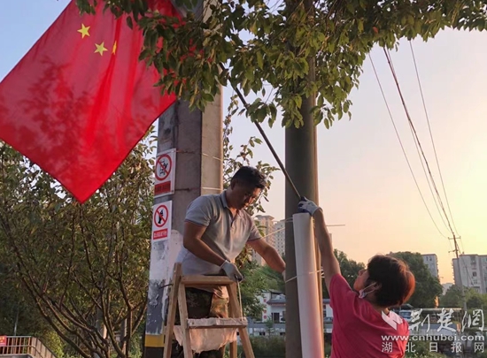 荊楚網(wǎng)(湖北日?qǐng)?bào)網(wǎng))訊(通訊員 陳卓、薛嬌)9月29日,黃石市疾控中心聯(lián)合包保的環(huán)湖社區(qū)開展“迎國慶掛國旗”活動(dòng)。鮮紅的國旗迎風(fēng)飄揚(yáng)裝點(diǎn)了環(huán)湖社區(qū),形成了一道靚麗的風(fēng)景線。