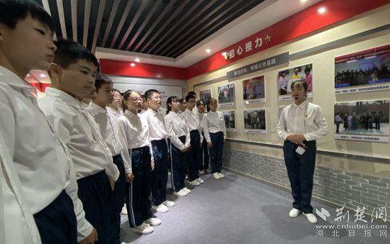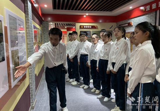 在學(xué)校紅色紀念館,該校八(1)班的陳媛堃、祁行、張勇泉等同學(xué)化身小小解說員,從“初心接力、紅色引領(lǐng)、涅槃重生”等方面為現(xiàn)場師生們講解了陳潭秋光輝的一生、介紹了學(xué)校在紅色精神的引領(lǐng)下不斷發(fā)展的歷程。
