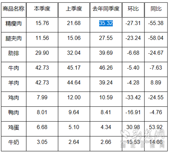 與淡水魚情況恰恰相反,本季度豬肉在連續(xù)二個(gè)季度持續(xù)下降的基礎(chǔ)上快速下降,精瘦肉價(jià)格環(huán)比下降27.3%,同比下降55.38%;雞蛋價(jià)格在本季度環(huán)比快速上漲31%,牛奶也步其后塵上漲15.5%。究其原因,在豬肉價(jià)格下行的帶動(dòng)下,牛肉、羊肉、雞肉、鴨肉價(jià)格均有下降。雞蛋由于季節(jié)性缺貨,本季度上漲顯著。