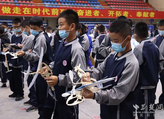 學(xué)生現(xiàn)場制作飛機(jī)模型。胡小軍 攝