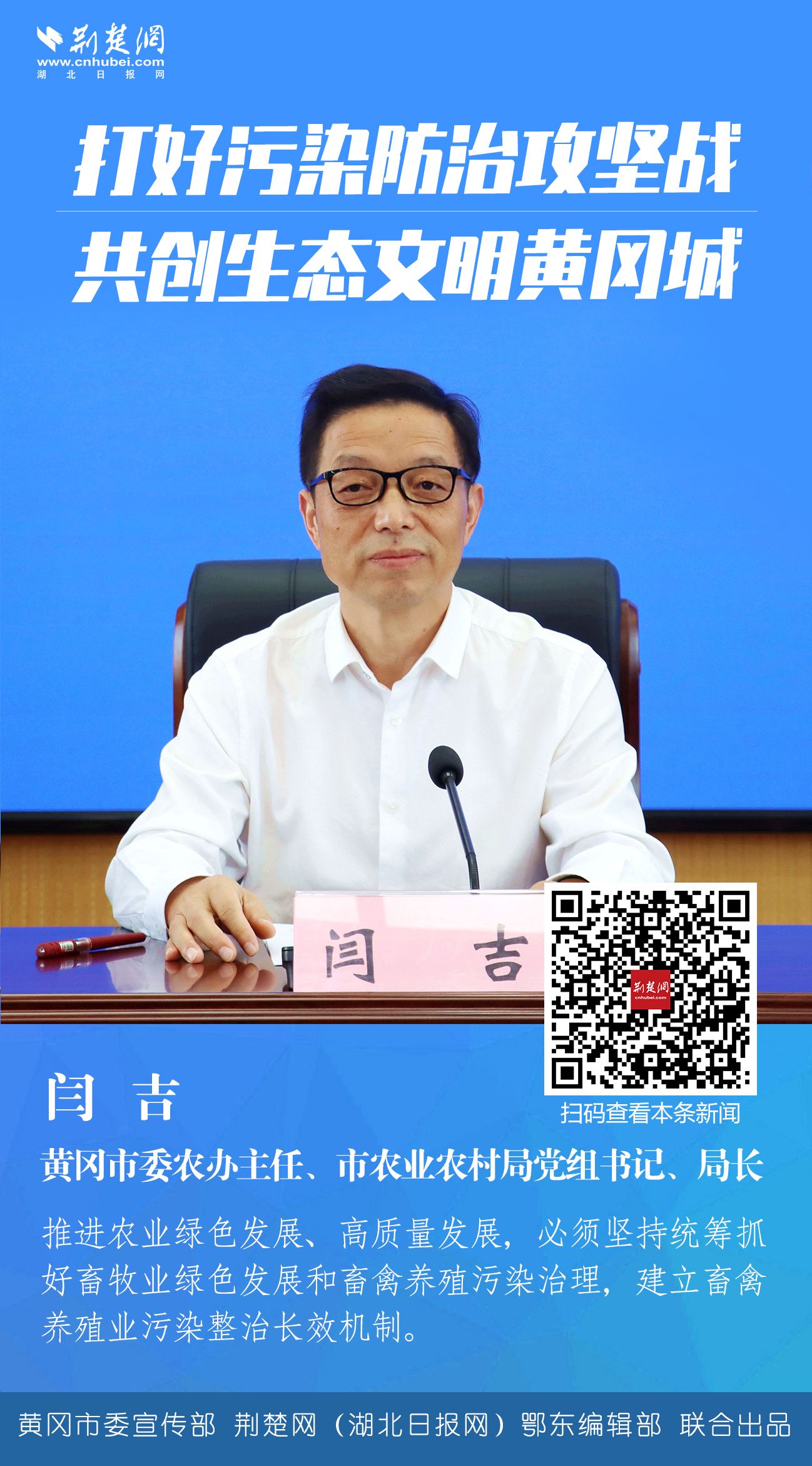 荊楚網(wǎng)(湖北日報網(wǎng))訊(記者胡小軍 見習記者陶輝 通訊員鄭華、郭斯)10月12日,黃岡市召開污染防治攻堅戰(zhàn)新聞發(fā)布會。會上通報了黃岡全市污染防治攻堅工作整體情況,同時,3家單位主要負責同志分別就城鎮(zhèn)生活源水污染治理、農(nóng)業(yè)農(nóng)村綠色發(fā)展工作、長江干流岸線清理整治等工作情況逐一進行發(fā)布。