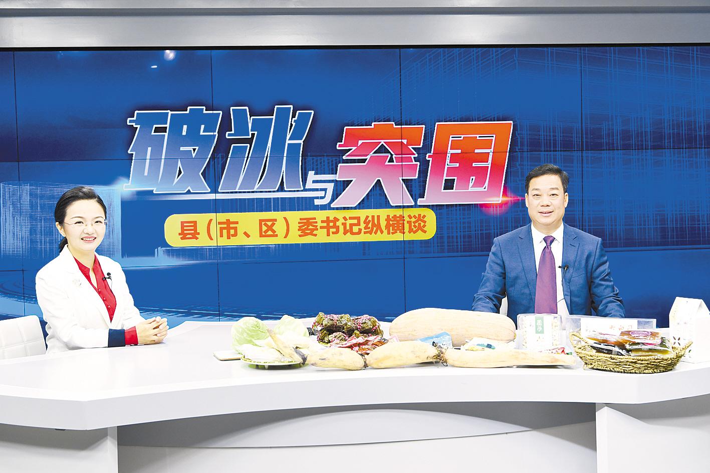 演播室現(xiàn)場,王永帶來了南瓜、蓮藕、甘藍、魚丸、螃蟹等諸多農(nóng)副產(chǎn)品。