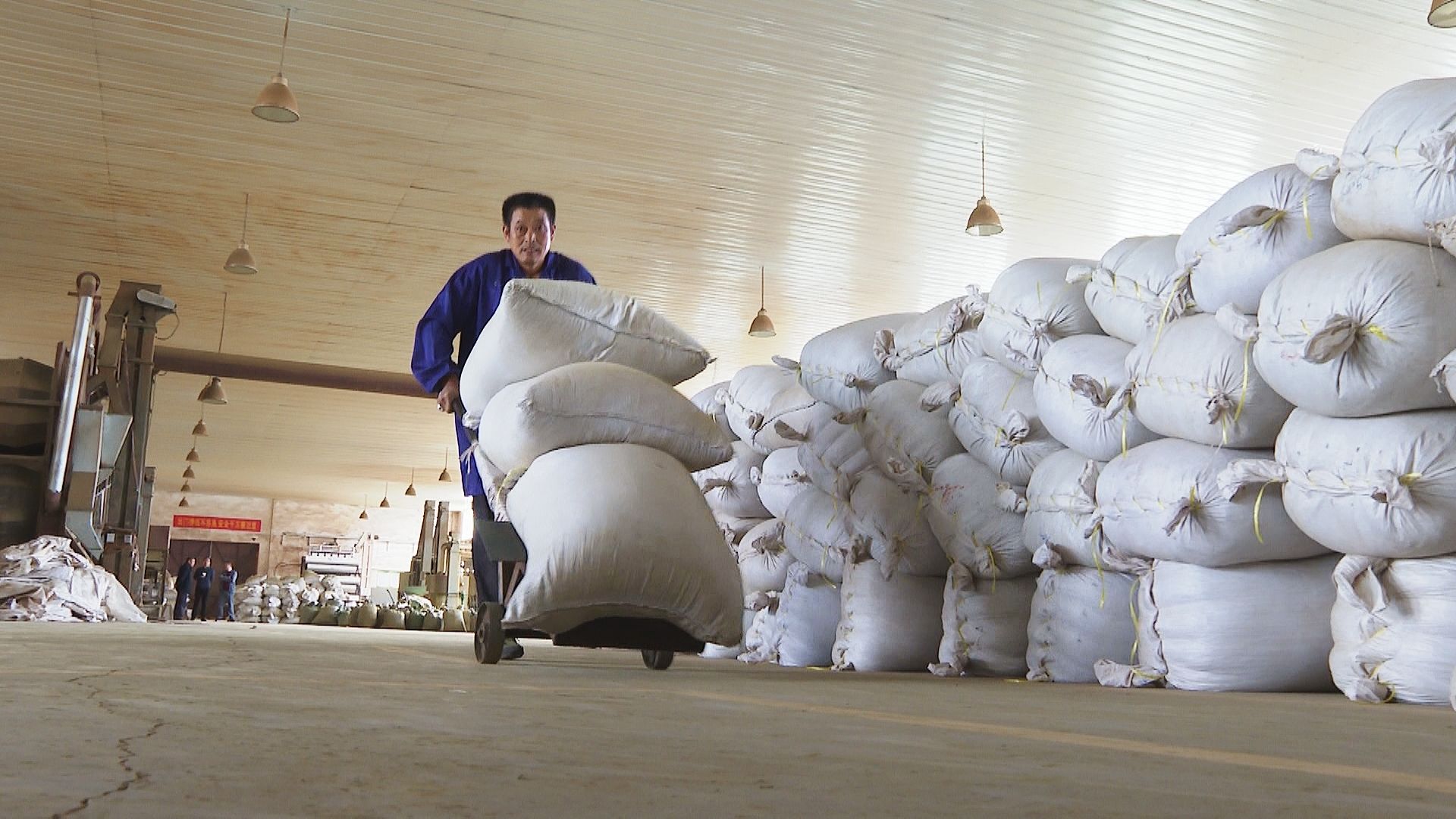 湖北雙獅茶業(yè)股份有限公司總經(jīng)理 薛海宏:我身邊正在裝車的是綠茶,一共有23噸貨,今天發(fā)到安徽省黃山市進(jìn)行包裝,它的目的地是法國,整個(gè)貨柜價(jià)值8萬美金。