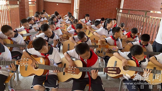 學(xué)習(xí)彈吉他。通訊員供圖