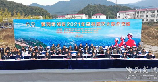 黃岡六安聯(lián)合開展跨省跨區(qū)域森林防滅火應(yīng)急演練。通訊員供圖