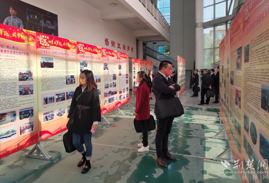 參會人員駐足觀看團風縣5年成就展。通訊員 供圖