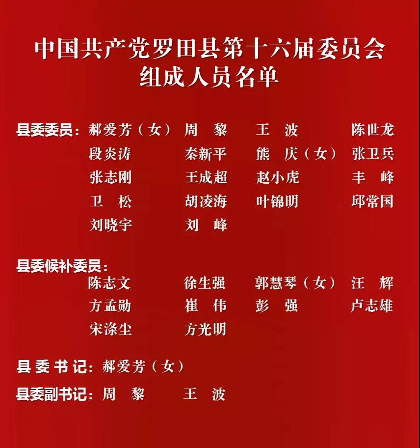 10月27日上午,中國共產黨羅田縣第十六屆委員會舉行第一次全體會議,選舉產生中共羅田縣第十六屆委員會書記、副書記。
