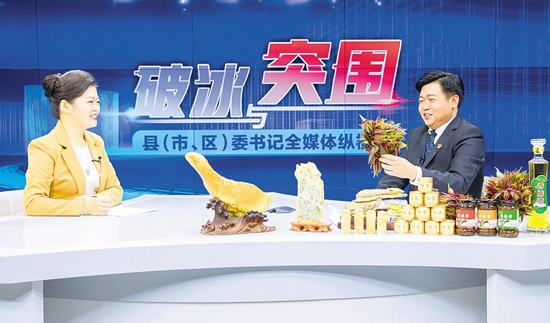 訪談現(xiàn)場,郭波書記化身推銷員,帶來被譽為“樹上蔬菜”的香椿系列產(chǎn)品。