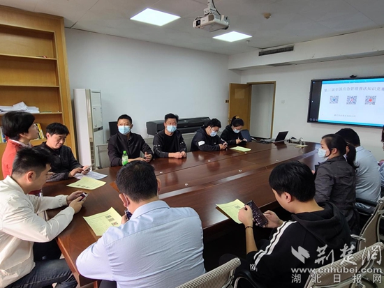 黃石市自來水公司安全部職員進(jìn)行應(yīng)急管理普法知識答題。通訊員供圖