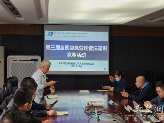 黃石熱電廠組織中層干部參加第三屆全國應(yīng)急管理普法知識競賽。通訊員供圖