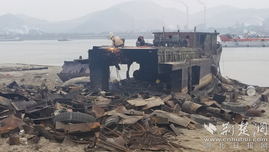 長江陽新岸線非法碼頭87家、泊位108個全部拆除,清理渣土砂石1.54萬噸,植樹7.3萬棵;