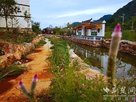 村莊漫步,紫薇、櫻桃、枇杷,園園相連;桂、茶、菊、櫻,四時花開;特色文化墻造型生動;環(huán)水渠清澈見底;景觀園長廊彩繪精美。