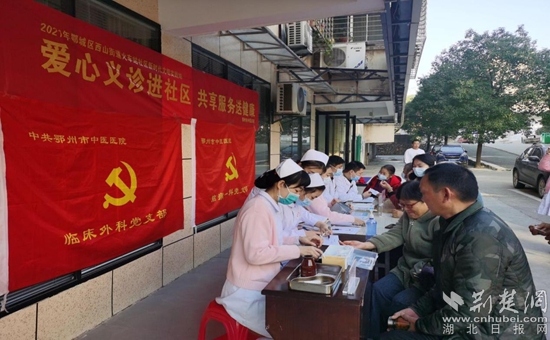 荊楚網(wǎng)(湖北日?qǐng)?bào)網(wǎng))訊(通訊員胡靜、呂菊蘭)11月12日,鄂州市中醫(yī)醫(yī)院臨床外科黨支部、腦病一科黨支部、中國南丁格爾志愿護(hù)理服務(wù)總隊(duì)鄂州市中醫(yī)醫(yī)院分隊(duì)聯(lián)合火車站社區(qū),開展“愛心義診進(jìn)社區(qū),共享服務(wù)送健康”的大型義診活動(dòng)。
