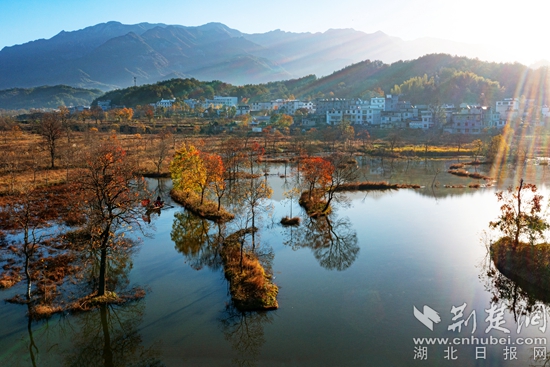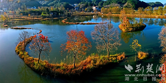 湖北省羅田縣九資河鎮(zhèn)素有中國紅葉之鄉(xiāng)美譽,且以圣人堂、徐鳳沖、羅家畈為最。九資河古鎮(zhèn)位于大別山主峰西側,方圓30余平方公里,林間布滿了木梓樹、紅楓、銀杏等樹木。秋末霜降,漫山遍野的樹葉五彩繽紛,紅的,黃的,綠的,紫的,將樸實的大山裝扮成明眸皓齒、妖嬈多姿的“顏值女神”,驚艷了這一方山水,也驚艷了遠道而來的游客。