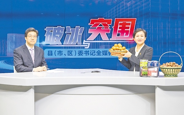 11月21日,羅田縣委書記郝愛芳(右)做客湖北日報5G演播室。 (湖北日報全媒記者 薛婷 攝)