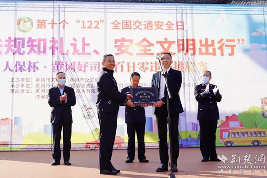 啟動儀式上,陳元凱向人保財險黃岡分公司頒發(fā)由湖北省公安交通管理局授予的《交通安全共建榜樣單位》榮譽證書。