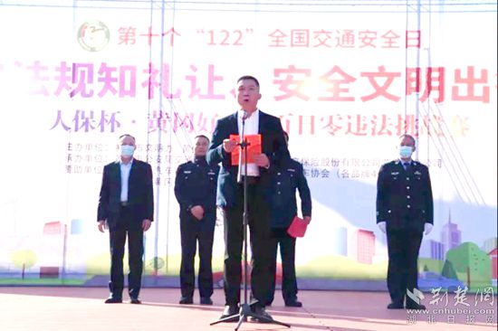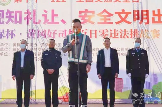 陳元凱詳細(xì)介紹了“人保杯·黃岡好司機百日零違法挑戰(zhàn)賽”的報名方式以及比賽規(guī)則,并呼吁廣大駕駛員朋友,尤其是客貨運職業(yè)駕駛員積極參與挑戰(zhàn)賽,自覺約束行車陋習(xí)、抵制交通違法,不斷筑牢全社會法治觀念和文明意識。