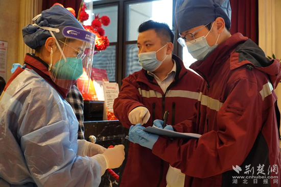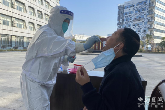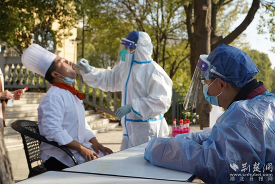 市疾控工作人員對(duì)半島國際酒店工作人員進(jìn)行核酸采樣。通訊員 供圖