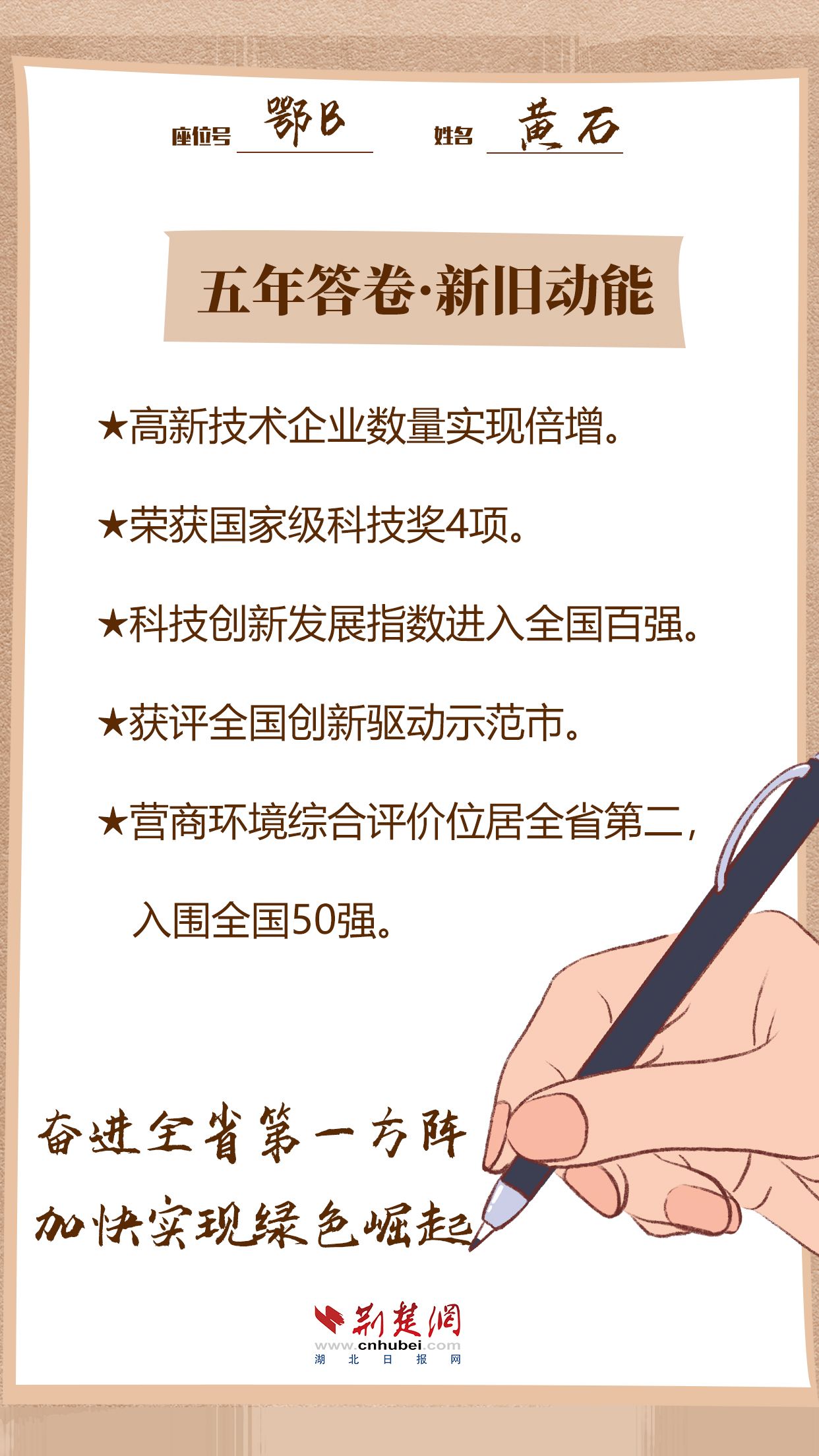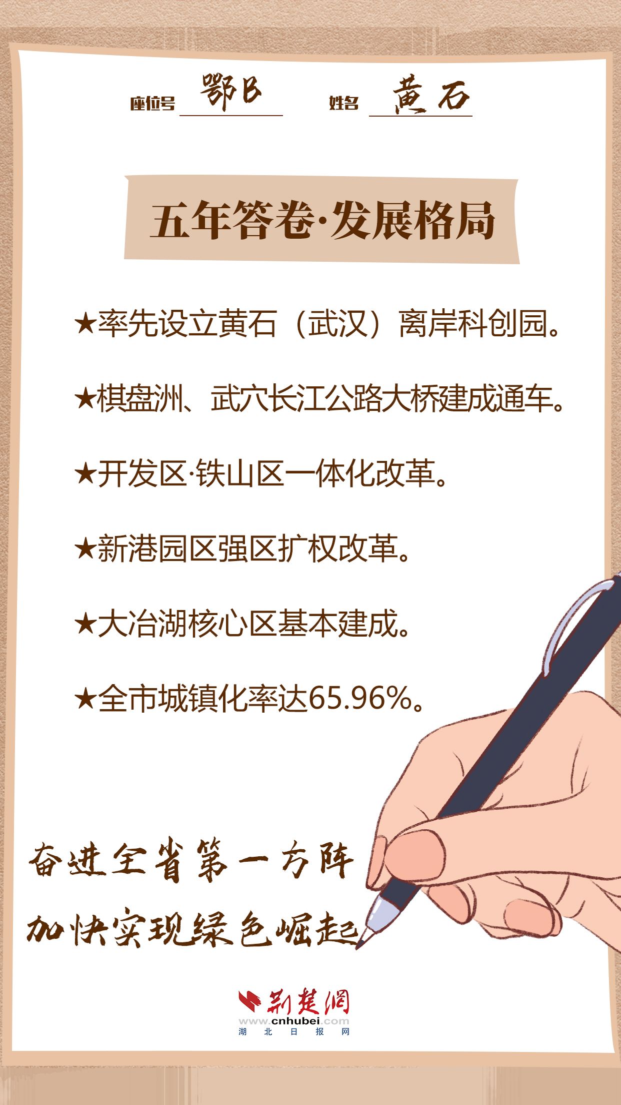 我們期待黃石,在全省“一主引領(lǐng)、兩翼驅(qū)動(dòng)、全域協(xié)同”區(qū)域發(fā)展布局中,以推動(dòng)高質(zhì)量發(fā)展為主題,奮進(jìn)第一方陣、實(shí)現(xiàn)綠色崛起、促進(jìn)共同富裕!