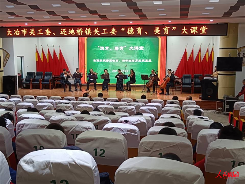 2021年12月3日下午,大冶市關(guān)工委、還地橋鎮(zhèn)關(guān)工委在還地橋鎮(zhèn)小學(xué)共同舉行了德育、美育大課堂活動(dòng)。給該鎮(zhèn)中心小學(xué)部分師生上了一堂生動(dòng)活潑、耐人尋味的器樂管弦音樂欣賞課。