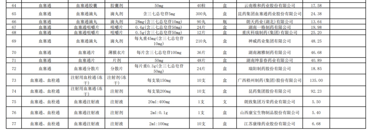 血塞通、血栓通產(chǎn)品組部分?jǐn)M中選結(jié)果信息