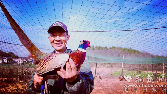 養(yǎng)殖場(chǎng)工作人員與白雉山雞。通訊員供圖