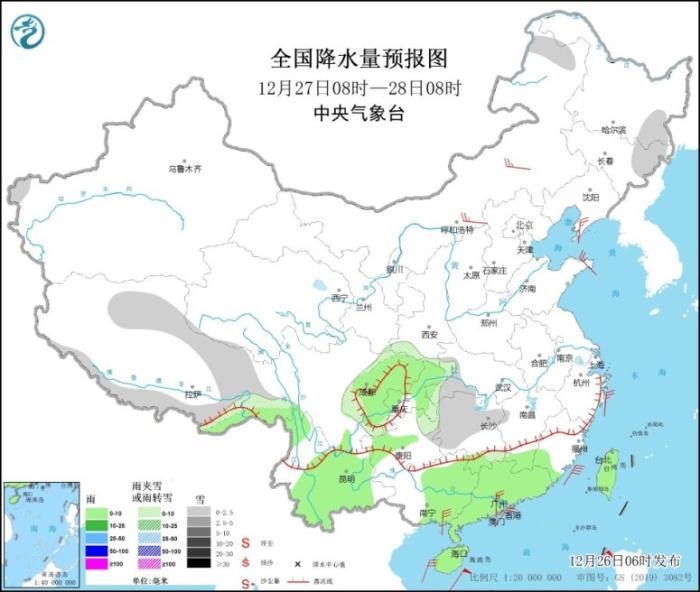 全國(guó)降水量預(yù)報(bào)圖(12月26日8時(shí)-27日8時(shí))