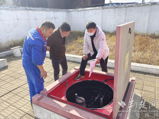 下陸區(qū)應(yīng)急局聯(lián)合專家對(duì)中石化岳家灣加油站油罐區(qū)進(jìn)行安全檢查。通訊員供圖
