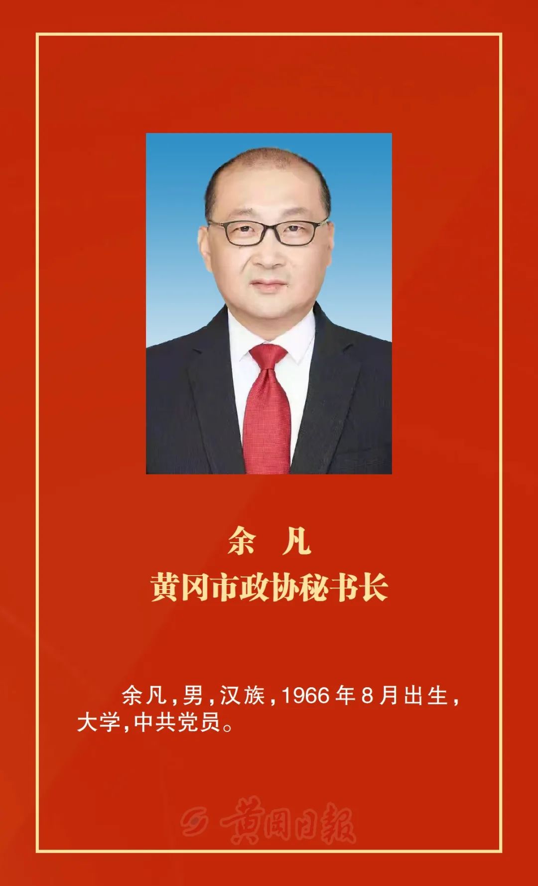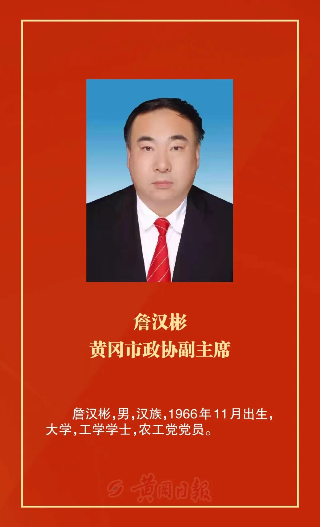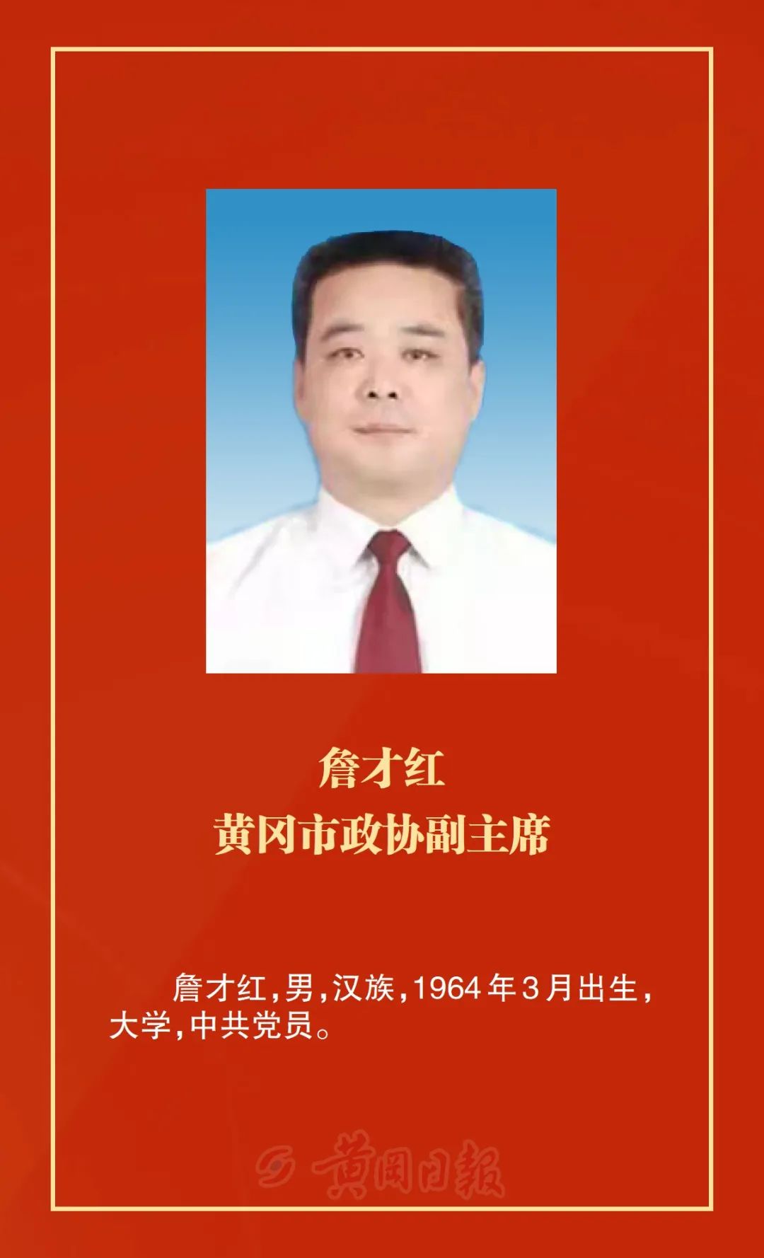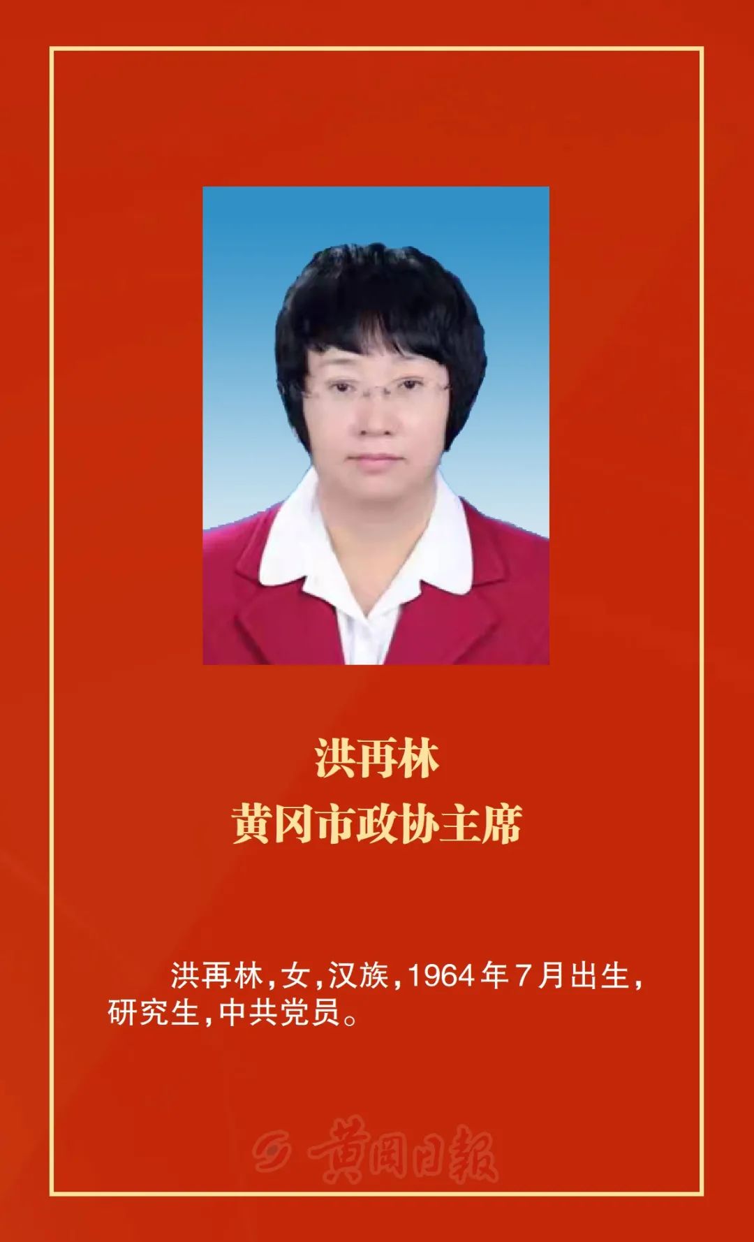 洪再林當(dāng)選為政協(xié)黃岡市第六屆委員會主席,何東英、詹漢彬、郭應(yīng)虎、王銀芬、黃玉琴、詹才紅、周銀芝、夏志東、蔡艮生當(dāng)選為政協(xié)黃岡市第六屆委員會副主席,余凡當(dāng)選為政協(xié)黃岡市第六屆委員會秘書長。