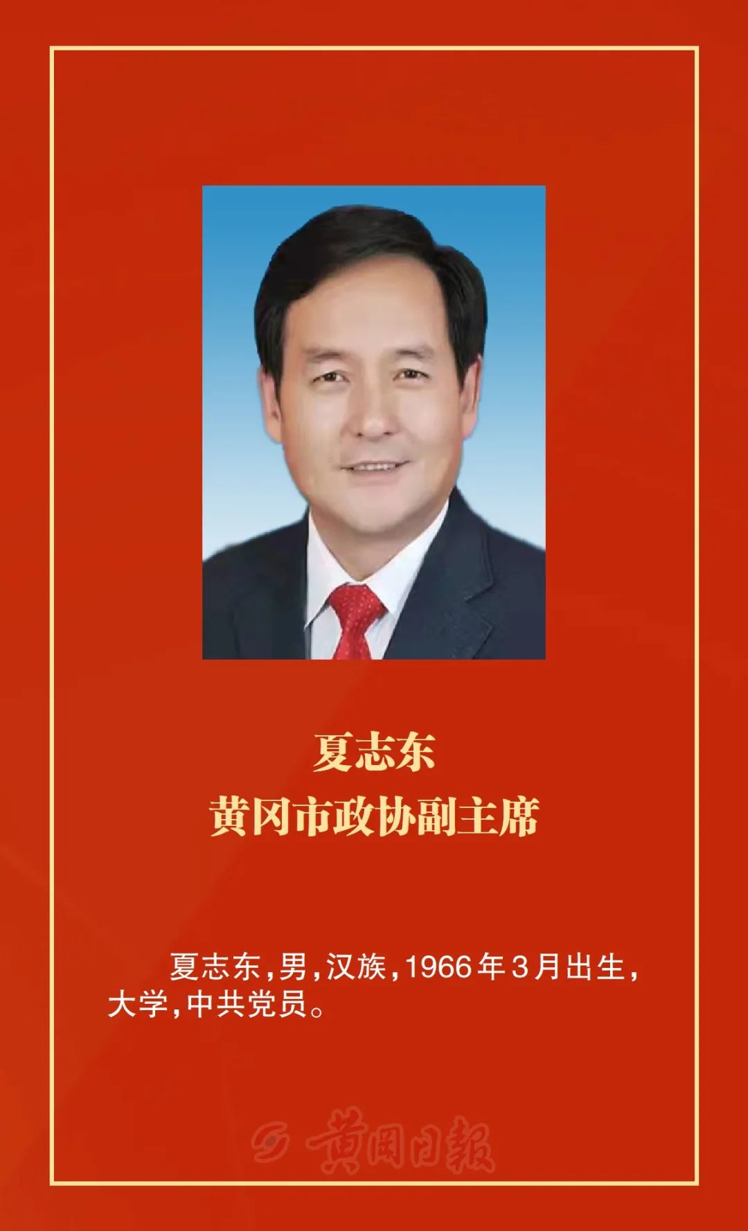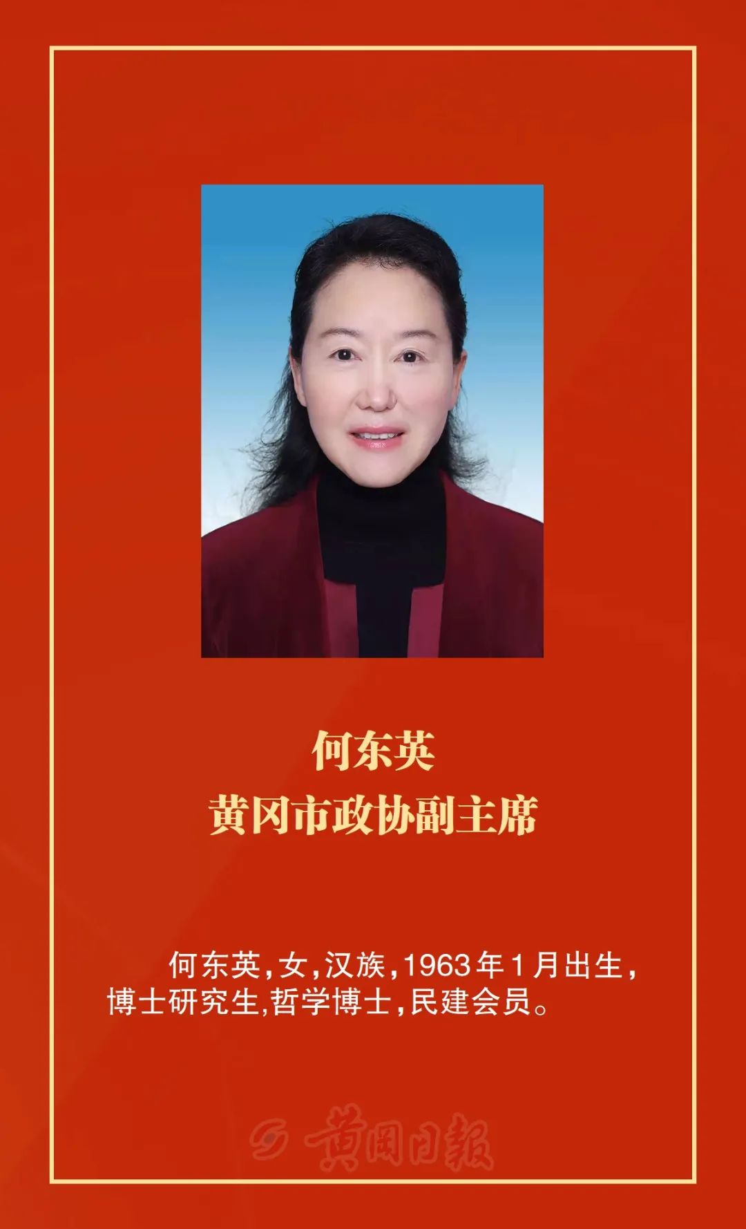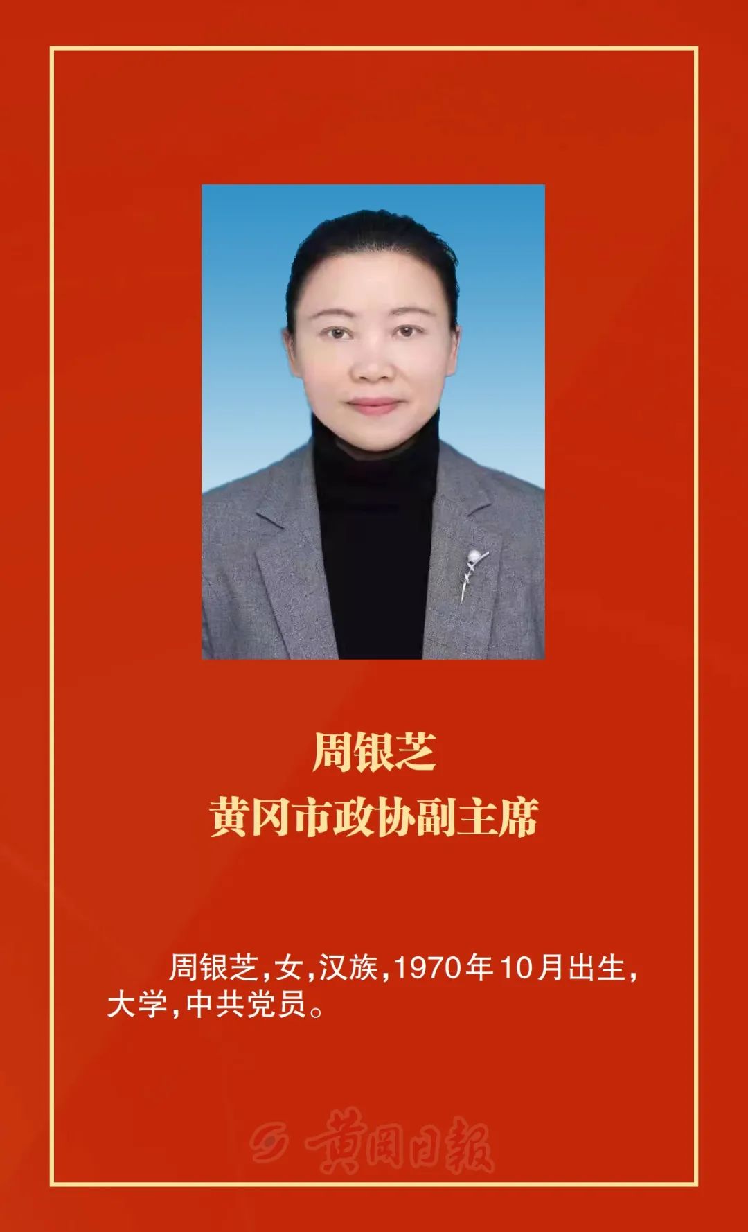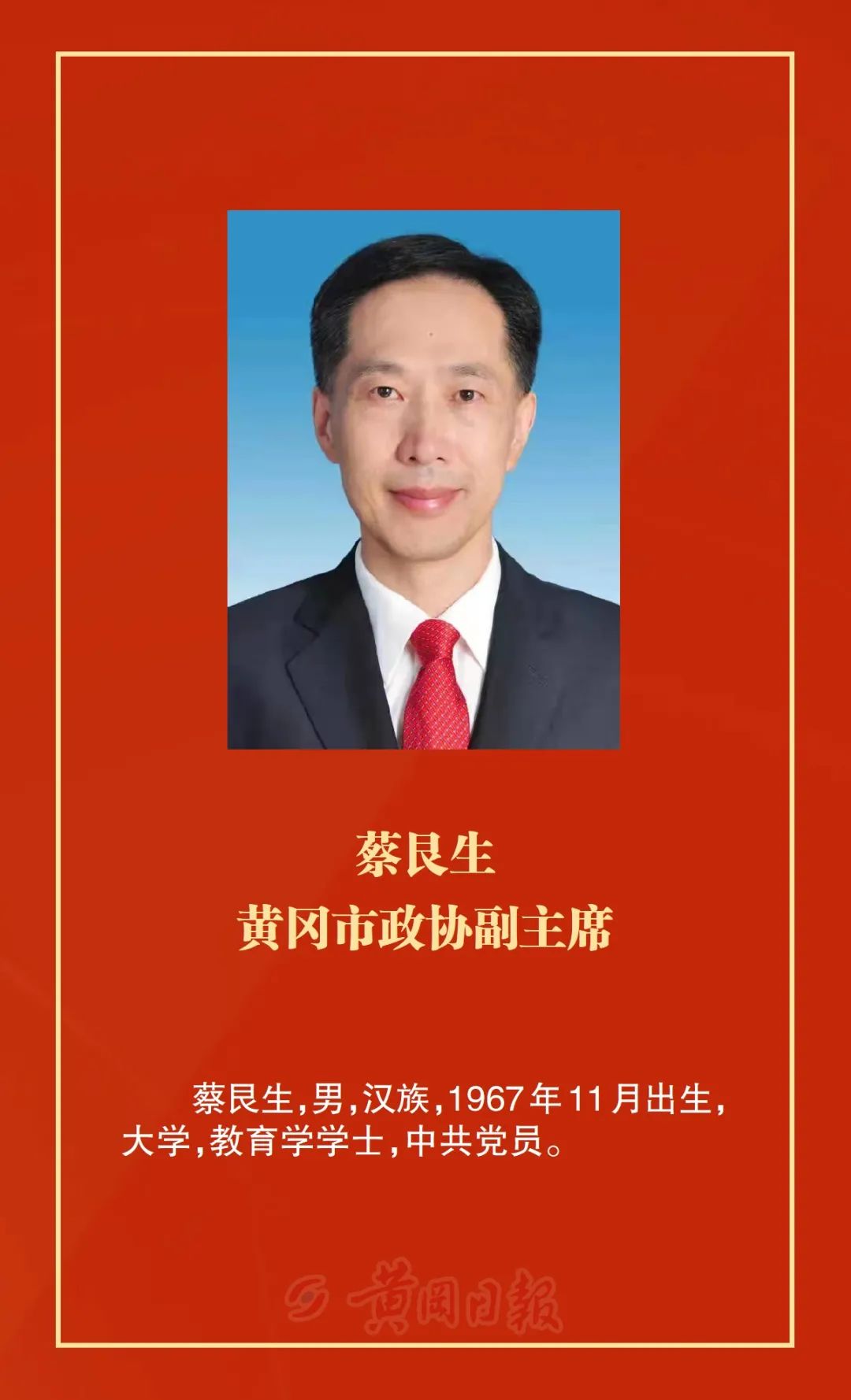 洪再林當(dāng)選為政協(xié)黃岡市第六屆委員會主席,何東英、詹漢彬、郭應(yīng)虎、王銀芬、黃玉琴、詹才紅、周銀芝、夏志東、蔡艮生當(dāng)選為政協(xié)黃岡市第六屆委員會副主席,余凡當(dāng)選為政協(xié)黃岡市第六屆委員會秘書長。