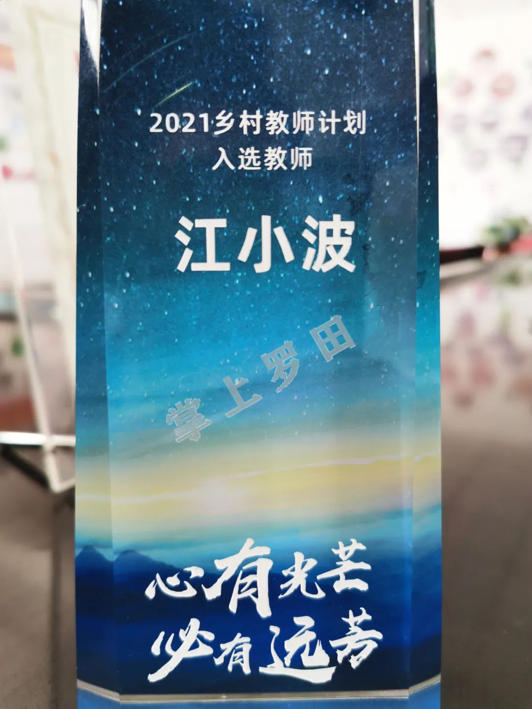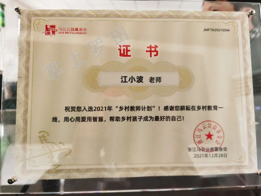 “使者”現(xiàn)場為他頒發(fā)了“2021鄉(xiāng)村教師計(jì)劃”入選證書和獎(jiǎng)杯,視頻那頭響起熱烈的掌聲!驚喜真的來得太突然了!江小波激動(dòng)不已,眼眶有些濕潤。