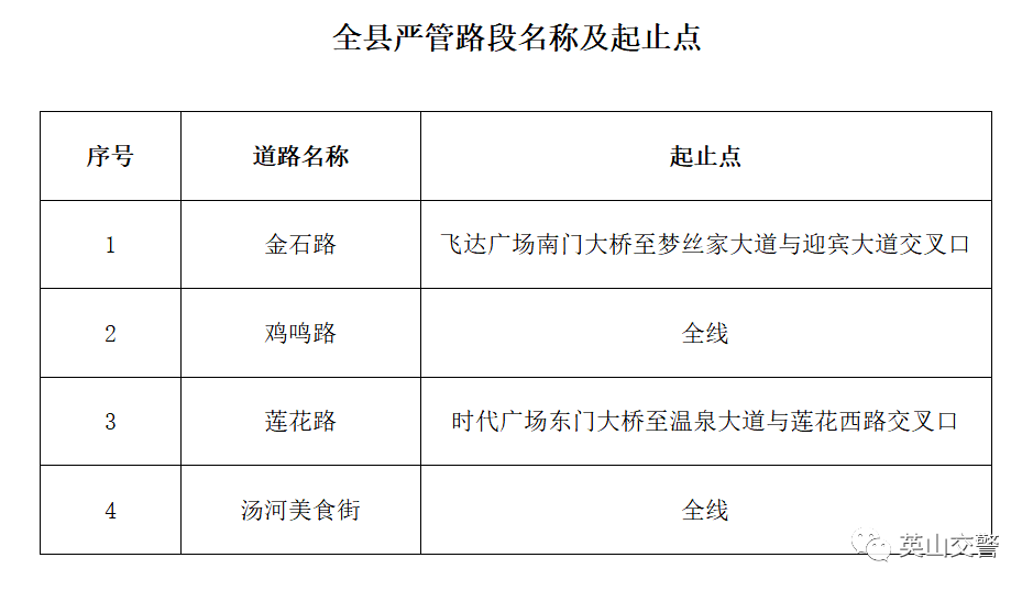 附件:英山縣嚴管路段名稱及起止點