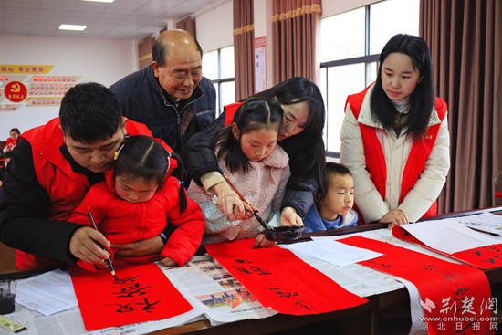 羅田縣青年志愿者教困難兒童寫(xiě)春聯(lián)。通訊員 供圖