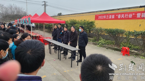 2月14日,蘭溪鎮(zhèn)舉辦“春風(fēng)行動(dòng)”暨保用工促就業(yè)招聘會(huì)。通訊員供圖