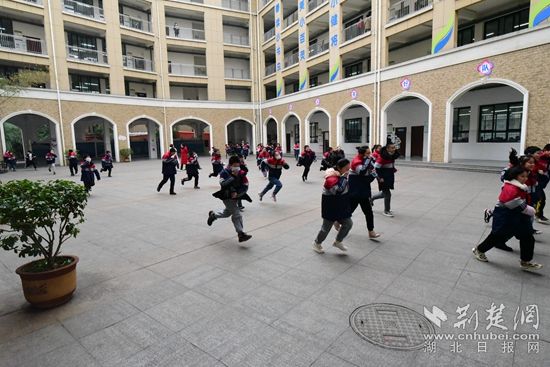活動(dòng)現(xiàn)場(chǎng),隨著一聲急促的警鈴響起,全體師生按照既定的消防逃生路線(xiàn),彎腰低頭、捂住口鼻,快速、有序地撤離到操場(chǎng)上。