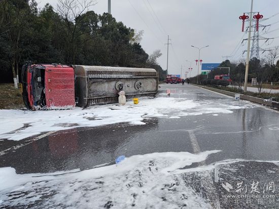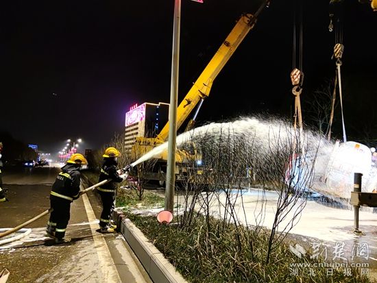 荊楚網(wǎng)(湖北日?qǐng)?bào)網(wǎng))訊(通訊員 黃晁慶)2月19日,黃石市下陸區(qū)鐘山大道大江環(huán)科旁一裝滿120#溶劑油的罐車發(fā)生泄漏,存在安全隱患。所幸消防人員及時(shí)趕到,經(jīng)過約7個(gè)小時(shí)的奮戰(zhàn)最終成功除險(xiǎn)。