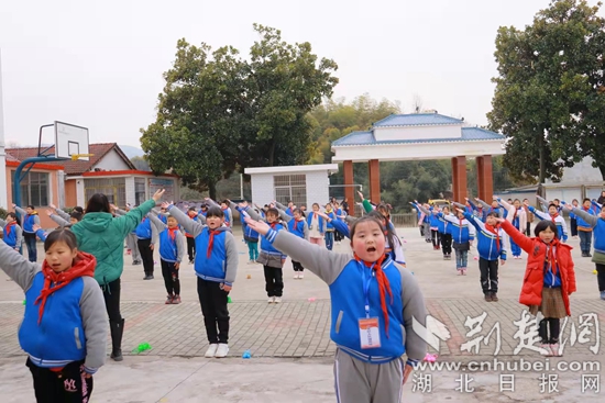 同學(xué)們在舉行簡樸而又莊重的升國旗儀式后,高唱《沒有共產(chǎn)黨就沒有新中國》,并集體做起了歡快律動(dòng)的武術(shù)操、繩操和手指舞。