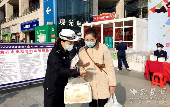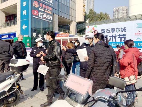荊楚網(wǎng)(湖北日?qǐng)?bào)網(wǎng))訊(通訊員胡賢鋒 李卓)“注意了,白底紅字臨時(shí)牌照的電動(dòng)自行車(chē),2025年3月1日起不得上道路行駛?!?月26日,圍繞即將施行的《黃石市電動(dòng)自行車(chē)管理?xiàng)l例》,一場(chǎng)內(nèi)容豐富的宣傳活動(dòng)在黃石摩爾城廣場(chǎng)舉行。