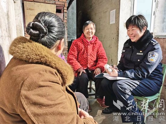 在鄂州市雷山社區(qū),民警胡敏結(jié)合“我為群眾辦實(shí)事”實(shí)踐活動(dòng),主動(dòng)走訪轄區(qū)困難群眾。在走訪中,胡敏與群眾促膝長(zhǎng)談,詳細(xì)詢問困難群眾生活狀況,叮囑他們今后生活中遇有問題,要及時(shí)給民警打電話,民警將盡最大努力幫助他們解決實(shí)際困難。