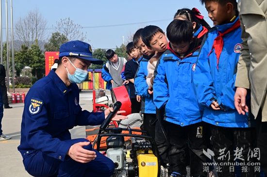 消防宣傳員帶領(lǐng)學(xué)生們近距離參觀消防車和裝備器材,組織學(xué)生穿戴各類消防服裝、裝備,對學(xué)生們提出的消防各類話題和提問進(jìn)行互動交流,寓教于樂的消防知識學(xué)習(xí)、新奇的裝備器材讓學(xué)生們耳目一新,在潛意識中培養(yǎng)了學(xué)生們消防安全意識。