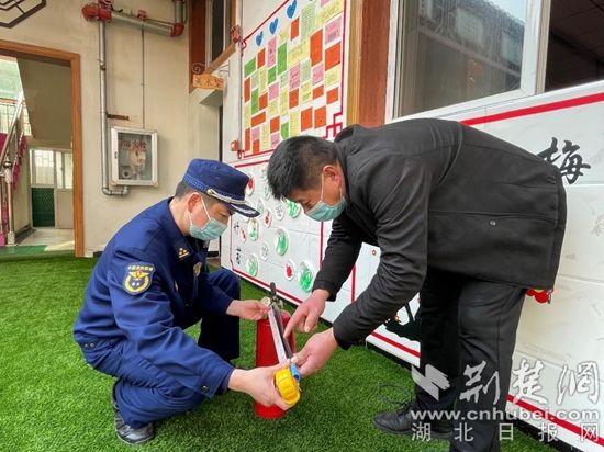 葛店消防救援大隊(duì)對(duì)葛華燃?xì)?、黃磯幼兒園等多家單位消防產(chǎn)品進(jìn)行抽樣檢查。通訊員供圖