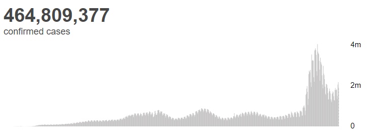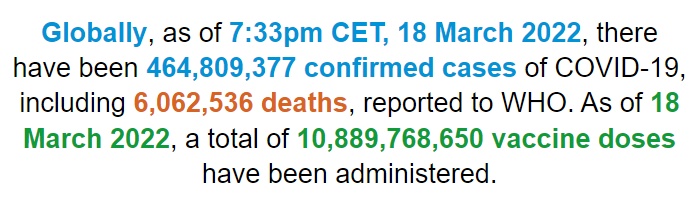 根據(jù)世衛(wèi)組織最新實(shí)時統(tǒng)計(jì)數(shù)據(jù),截至歐洲中部時間3月18日19時33分(北京時間3月19日2時33分),全球累計(jì)新冠肺炎確診病例464809377例,累計(jì)死亡病例6062536例。18日全球新冠肺炎確診病例新增1931180例,死亡病例新增5192例。(總臺記者 朱赫)