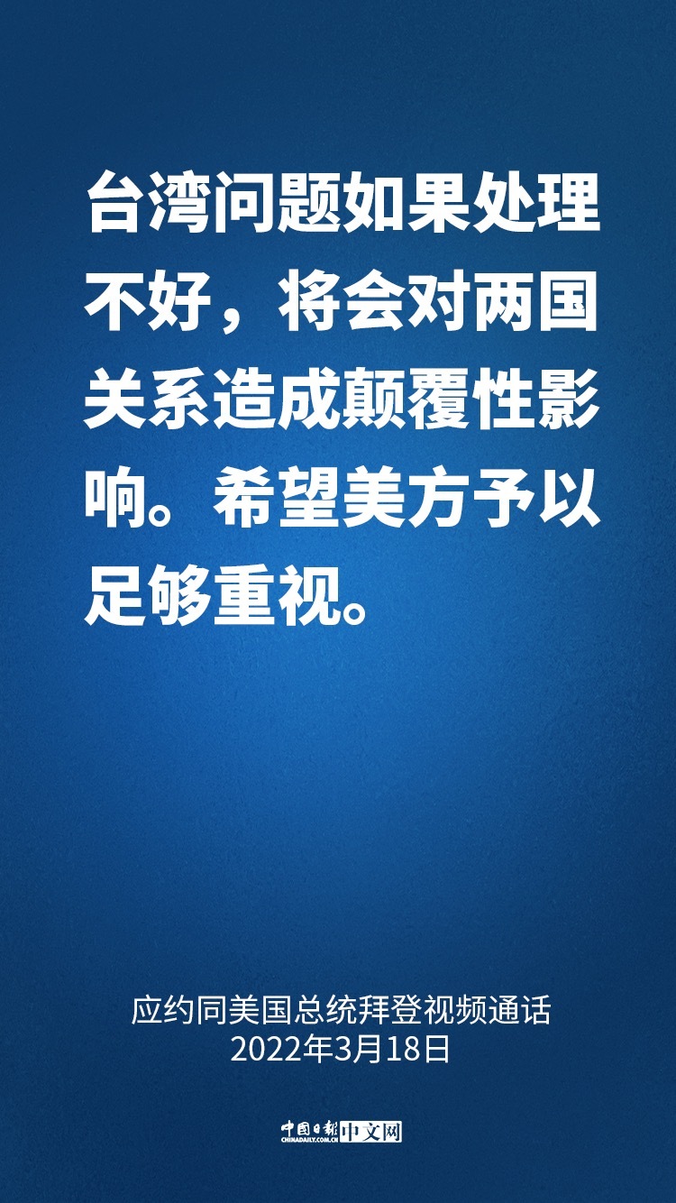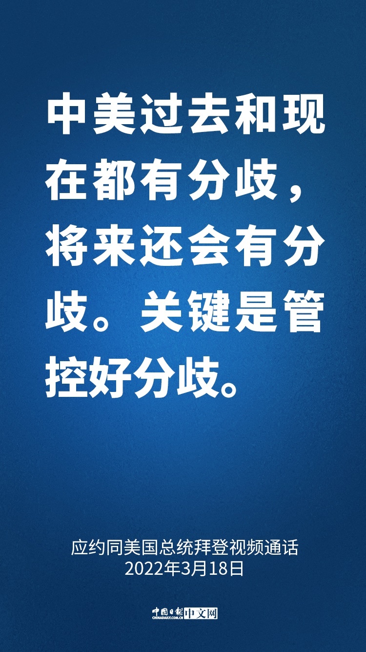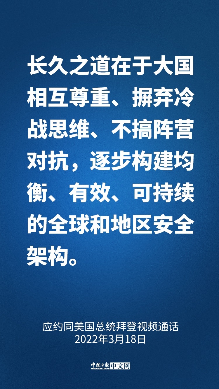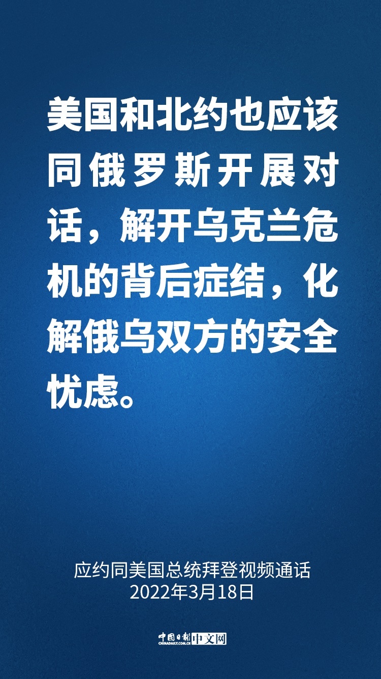 國(guó)家主席習(xí)近平3月18日晚應(yīng)約同美國(guó)總統(tǒng)拜登視頻通話。兩國(guó)元首就中美關(guān)系和烏克蘭局勢(shì)等共同關(guān)心的問(wèn)題坦誠(chéng)深入交換了意見。習(xí)近平指出: