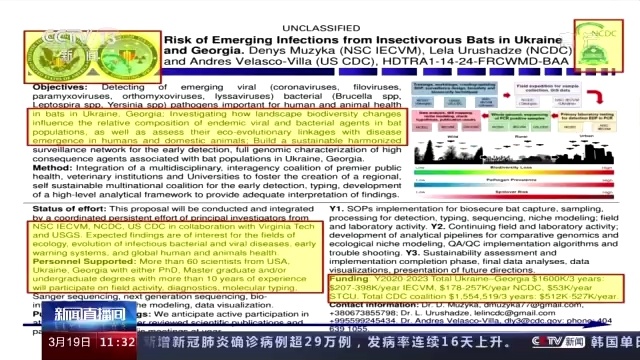 3月10日俄方再度發(fā)布消息說,經過對相關文件進一步分析,俄方發(fā)現(xiàn),美方計劃于2022年在烏克蘭開展鳥類、蝙蝠及爬行動物病原體研究,并逐步轉入研究這些動物攜帶非洲豬瘟和炭疽病毒的可能性,實驗目的是“為致命病毒病原體的隱蔽傳播建立機制”。