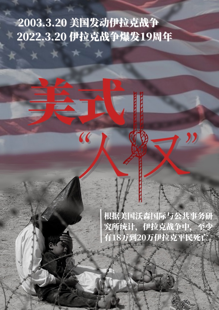 新華社巴格達(dá)3月22日電(記者董亞雷 張淼)2003年3月20日,美國(guó)及其西方盟友以所謂伊拉克有大規(guī)模殺傷性武器為由,不顧國(guó)際社會(huì)強(qiáng)烈反對(duì),繞過(guò)聯(lián)合國(guó)安理會(huì),悍然入侵伊拉克。時(shí)至今日,美國(guó)也未拿出大規(guī)模殺傷性武器的證據(jù)。而這場(chǎng)戰(zhàn)爭(zhēng)導(dǎo)致伊拉克生靈涂炭,持續(xù)動(dòng)蕩,極端組織趁亂坐大,恐怖襲擊和教派沖突頻發(fā)。